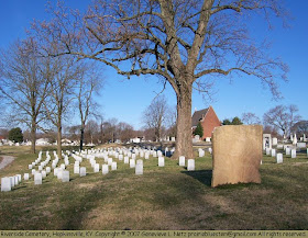 The Scotten Cemetery is described as "marooned in a cornfield on 200 North about 3/4 of a mile west of 600 West. The burial ground is recognizable only by a wooded area on the south side of 200 North, and the stones can only be seen during the winter months when foliage is gone." The last burial there was in 1878.