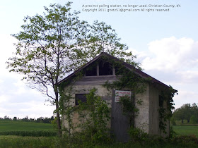 This little concrete-block building stands at the intersection of Pilot Rock Road and Laytonville Road in Christian County, KY. It was once the voting place for citizens of the surrounding rural area. Several local residents have told me that they remember voting in this building, years ago.
